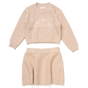 GIRLS CREAM KNIT JUMPER & SKIRT OUTFIT